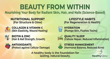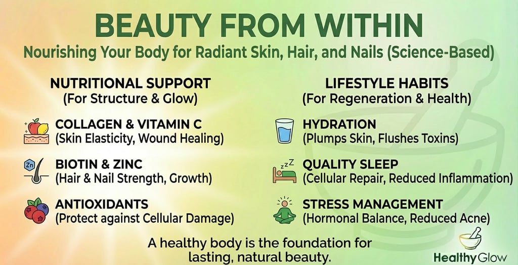 True radiance is not just about what you apply to your face; it is about what you put into your body. Beauty from within is a holistic approach that focuses on fueling your cells with the right nutrients to create a natural glow. To achieve lasting skin health, you must understand the deep connection between your diet, your gut health, and your physical appearance. This guide will help you navigate the world of nutrition and show you how to support your skin, hair, and nails biologically. It is time to stop relying solely on creams and start nourishing your body to reveal your best self.