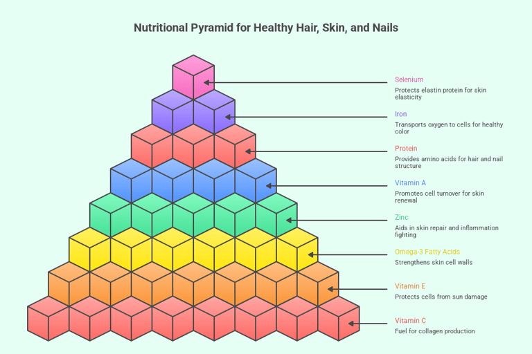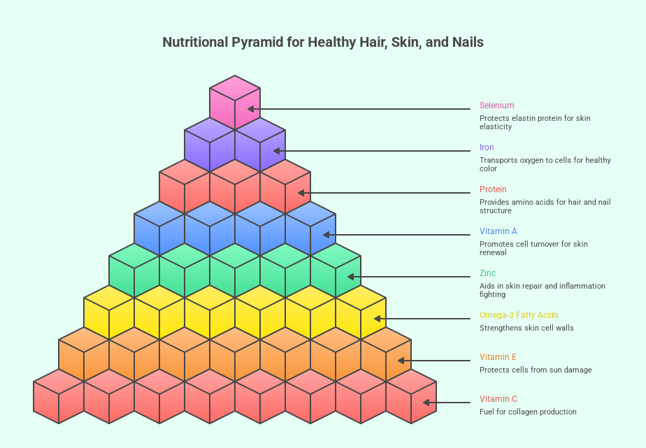 Planning your meals and understanding specific nutrients are the core elements that determine the quality of your hair, skin, and nails. Here are some nutritional strategies that can help you achieve your goals in this area.